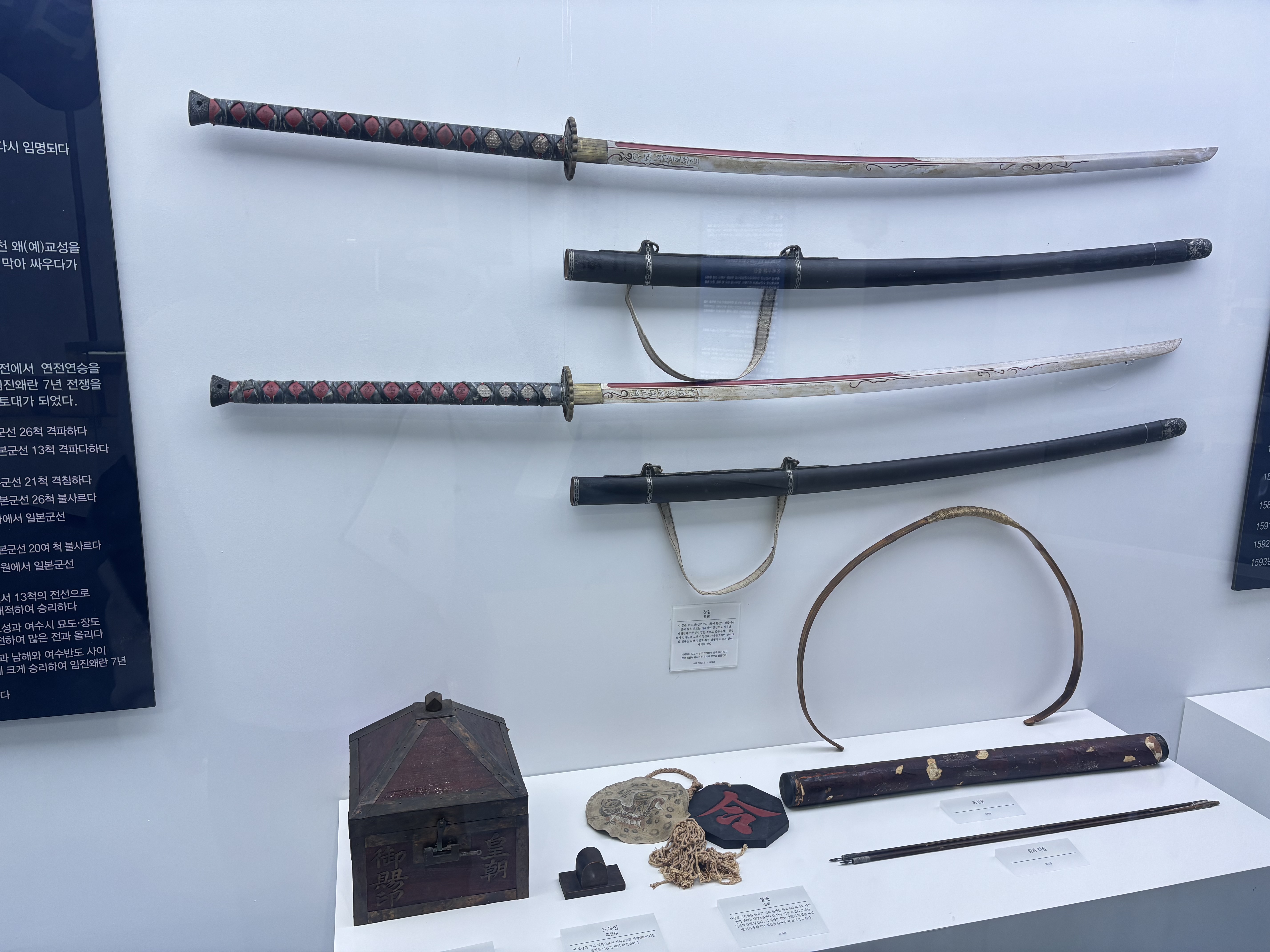 건물 안에 이순신 장군님이 치른 전쟁 일대기와 임진일기, 갑옷, 칼 등 여러 가지를 재미있게 구경할 수 있게 되어있었습니다.
