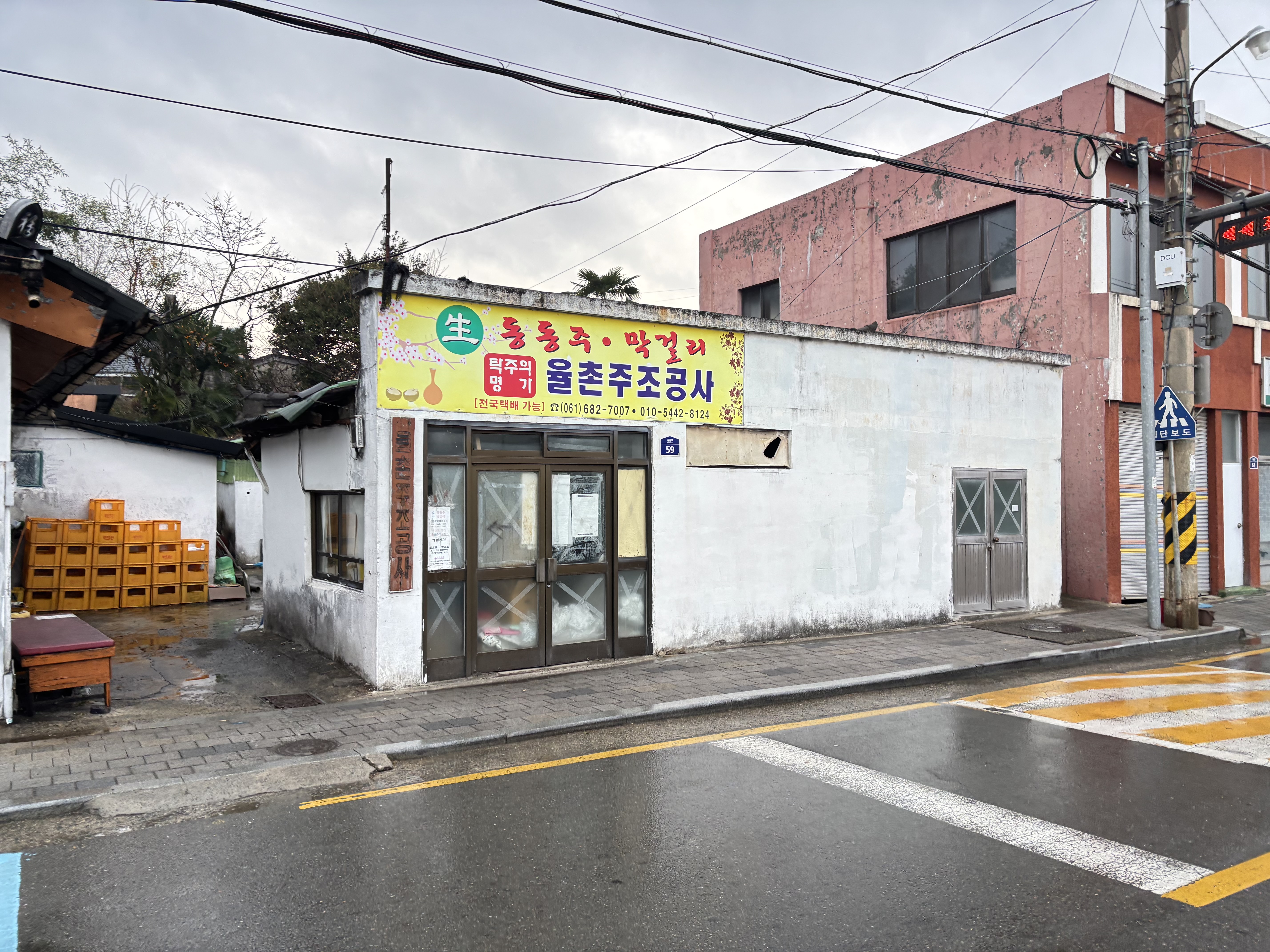 이곳이 두 번째 킥! 바로 '율촌주조장'입니다. SNS에서 좀 유명한 곳이었는데요. 시골에 작은 막걸리 주조장인데 상당히 유명하더라고요.