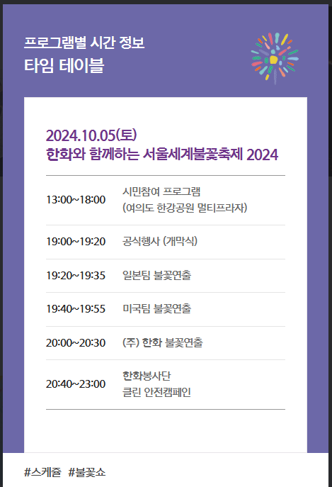 2024년 10월에도 어김없이 여의도 불꽃축제(공식명칭으로는 서울세계불꽃축제) 가 코앞으로 다가왔다.